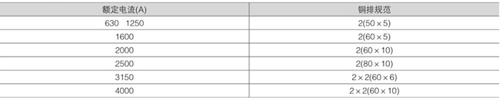 裝置水平母線銅排選用如下表
