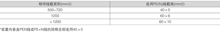 貫通水平中性接地(PEN)或接地+中性線 (PE+N)規(guī)格如表: