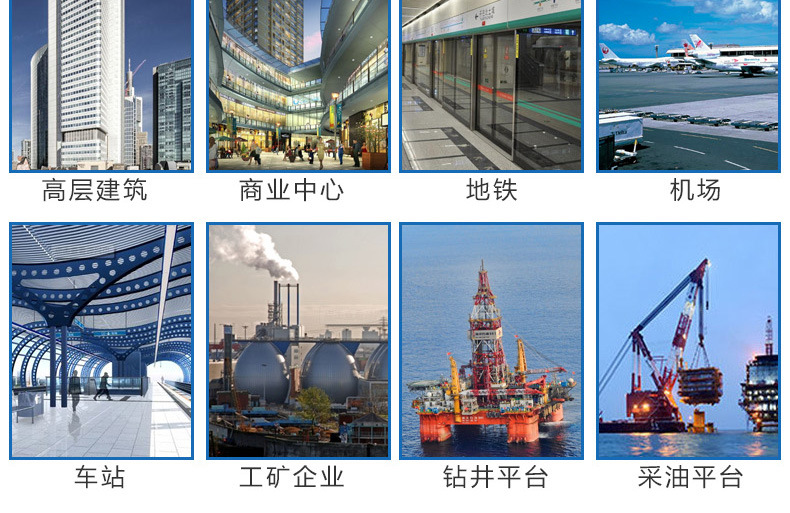 應(yīng)用領(lǐng)域:高層建筑、機(jī)場、車站、碼頭、電廠、變電站等